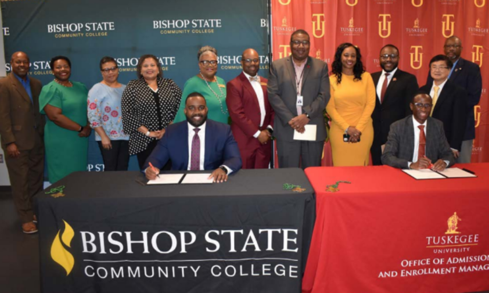 Additionally, in February 2025, Bishop State signed an MOU with Tuskegee University, which provides a seamless pathway for Bishop State students to transfer associate degree credits toward a bachelor’s degree at Tuskegee, ensuring a smooth transition for those pursuing advanced degrees. This collaboration will provide students with greater access to academic resources, scholarships and mentorship opportunities. Under the agreement, Bishop State students who earn an Associate of Art or Associate of Science degree may be eligible for admission to Tuskegee University with up to a maximum of 64 semester hours transferring. In the MOU, Tuskegee University agrees to award three transfer scholarships for eligible students every fall.